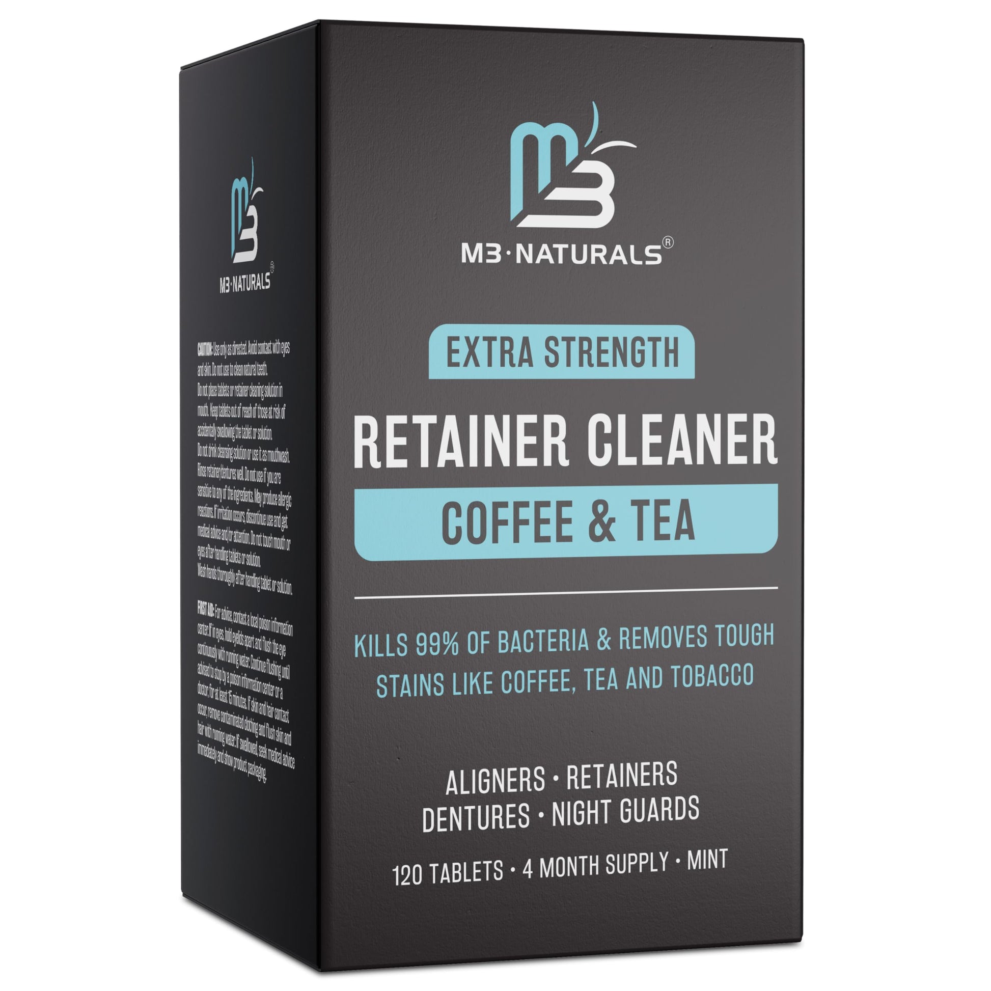 M3 Naturals Coffee and Tea Retainer Cleaner Tablets | Remove Odors Stains and Plaque | 4 Month Supply | FSA HSA Approved | Denture Cleanser for Coffee and Tea Lovers